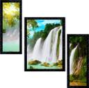 Janki Online Set of 3 Scenery Modern Art Glass Framed Wall Painting For Home Office and Temple and Home Décor Digital Reprint 14 inch x 11 inch Painting (With Frame, Pack of 3)