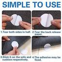 Antiskid Pad for Sofa Cushions, Fixed without needle, invisible without a trace. Suitable for various occasions such as floor mat, table, chair, and sofa. Does not leave any marks, does not damage the goods surfaces. Circular Size: 50 x 50mm. Type: Hook face + sticky face. How to Use: Very simple to use, just take off the plastic and stick it to the edges of your rug Uses grip polymer technology, grips the rug while hundreds of Suction pockets grip the floor Prevents curled corners, bunches, slips and trips; Will not leave a sticky residue or damage your floor..