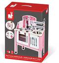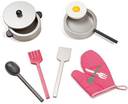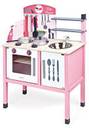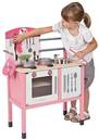 Prepare tasty little dishes for your friends, just like mom and dad, and become a Little Chef!!! The all-wood Maxi Kitchen includes several accessories: 3 spoons, one casserole with cover, a frying pan with a fried egg and a glove. Wood : MDF (printed background, dark grey shelves, light pink side, doors, egg, pan, casserole), plywood (work plan, inner shelf), pine wood (sides of the kitchen), cotton (glove), stainless steel (screws, sink). Height of the worktop : 50 cm. Closed colour box with plastic handle.