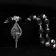 Japam Silver Plated Karungali Mala with Trishool Pendant Wood Necklace