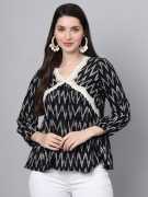 The Japer Kurti Women Printed Regular Wear Peplum Top is a stylish and versatile garment designed for casual and semi-formal occasions. It features a peplum style, which is characterized by a flared hem that creates a flattering silhouette. This top is adorned with beautiful printed patterns, adding a touch of femininity and elegance to the overall design.Made from high-quality, breathable fabric, it ensures comfort and ease of movement throughout the day. The regular fit is designed to suit most body types, while the peplum style accentuates the waist for a more structured look.