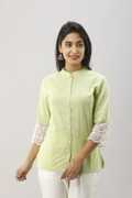 An amazing range of Women Shirts in soft and solid colors that looks perfect for regular wear. With beautiful designs and patterns, these apparels are very stylish and comfortable too. Get rid of the 'regular' look this season wearing this shirt by Japer Kurti. With a perfect blend of comfort and traditional style, this Green Color Printed Straight Kurta from Japer kurti exhibits 3/4th sleeves With mandarin Collar, Embellished with Buttons. Tailored from Slub Cotton , this shirt will keep you at ease all day long. Team this Shirt with Jeans, Jeggings, Trousers, Or Pants.