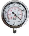 "Ji" Japsin Instrumentation Economical Vacuum Gauge Glycerin Filled, 4" (100 mm) Dial, Range -760 mmHg to 0 with Dual Scale of -30 Inhg to 0, Direct Mounting Bottom Entry, 3/8" BSP (M) Connection, SS Case & SS Wetted Parts (Case Bayonet Type)
