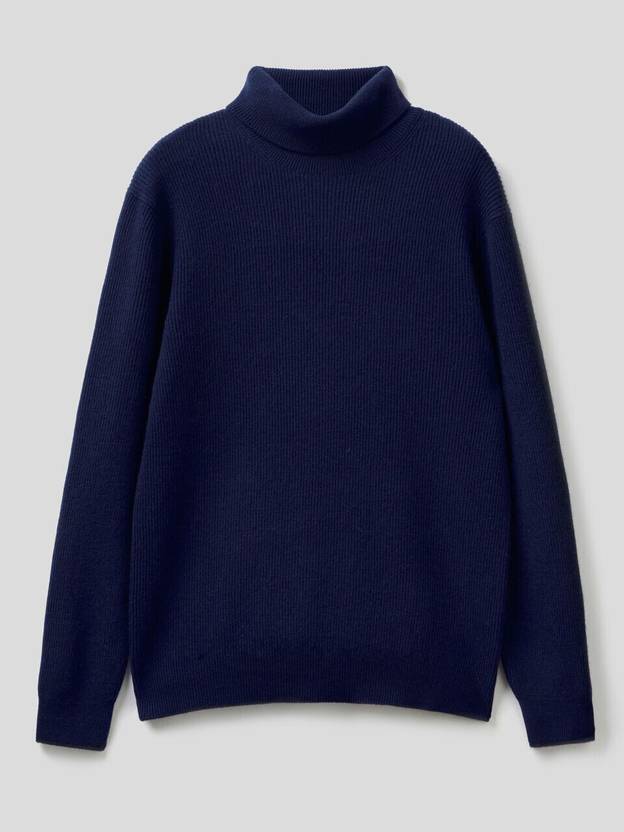 Jaqque Men Solid High Neck Dark Blue Sweater