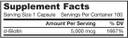 Energy Production, Skin and Hair Support Dietary Supplement Biotin is a water-soluble B vitamin typically found in liver, egg yolk, cereals, legumes and nuts. Biotin is essential for normal skin and hair growth, lipid metabolism and energy production (ATP). Alcohol consumption decreases biotin status in the body. Suggested Use Usage: Take 1 capsule per day with a meal or as directed by your qualified healthcare professional. Other Ingredients Dicalcium phosphate, cellulose, magnesium stearate (vegetable source) and silicon dioxide. Capsule consists of gelatin. No wheat, no gluten, no soybeans, no dairy, no egg, no fish/shellfish, no peanuts/tree nuts. Warnings Note: If you have a medical condition, are pregnant, lactating, trying to conceive, under the age of 18, or taking medications, consult your healthcare professional before using this product. Keep out of the reach of children.