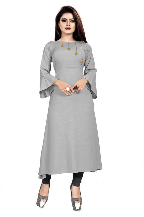 Women Embellished Cotton Silk A-line Kurta (Grey)