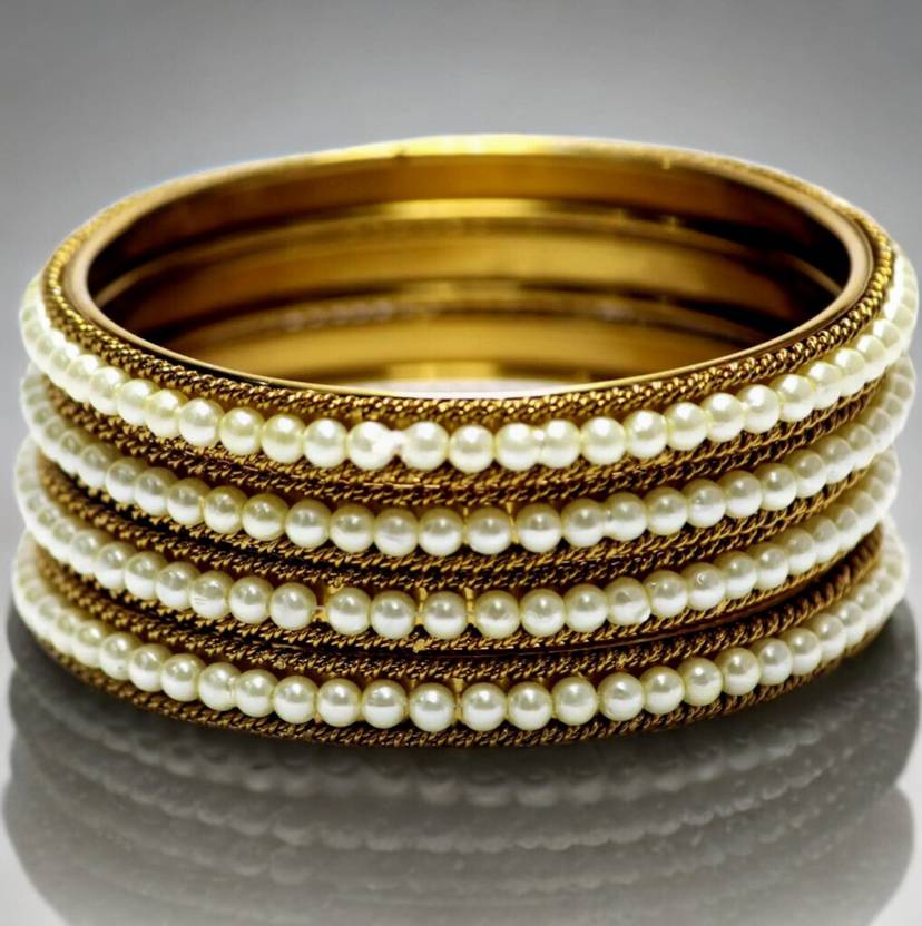 Pearl Elegance: Adorned with delicate pearls, these pearl bangles reflect timeless sophistication and cultural richness.