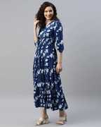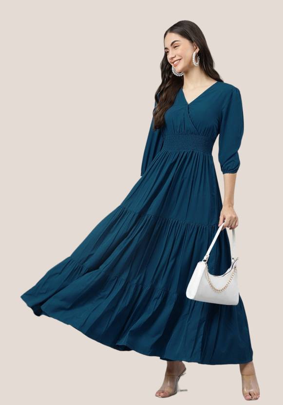 Jash Creation Women Fit and Flare Dark Blue Maxi/Full Length Dress