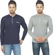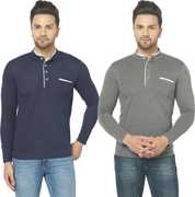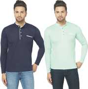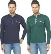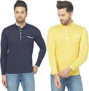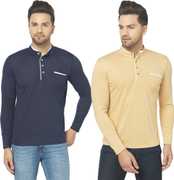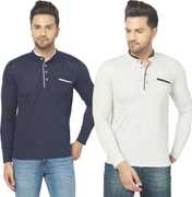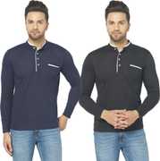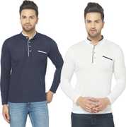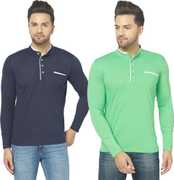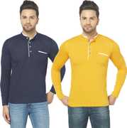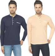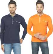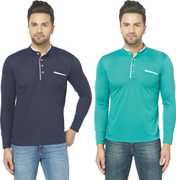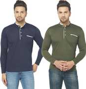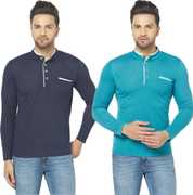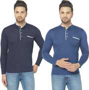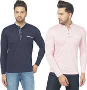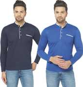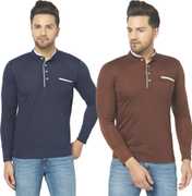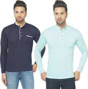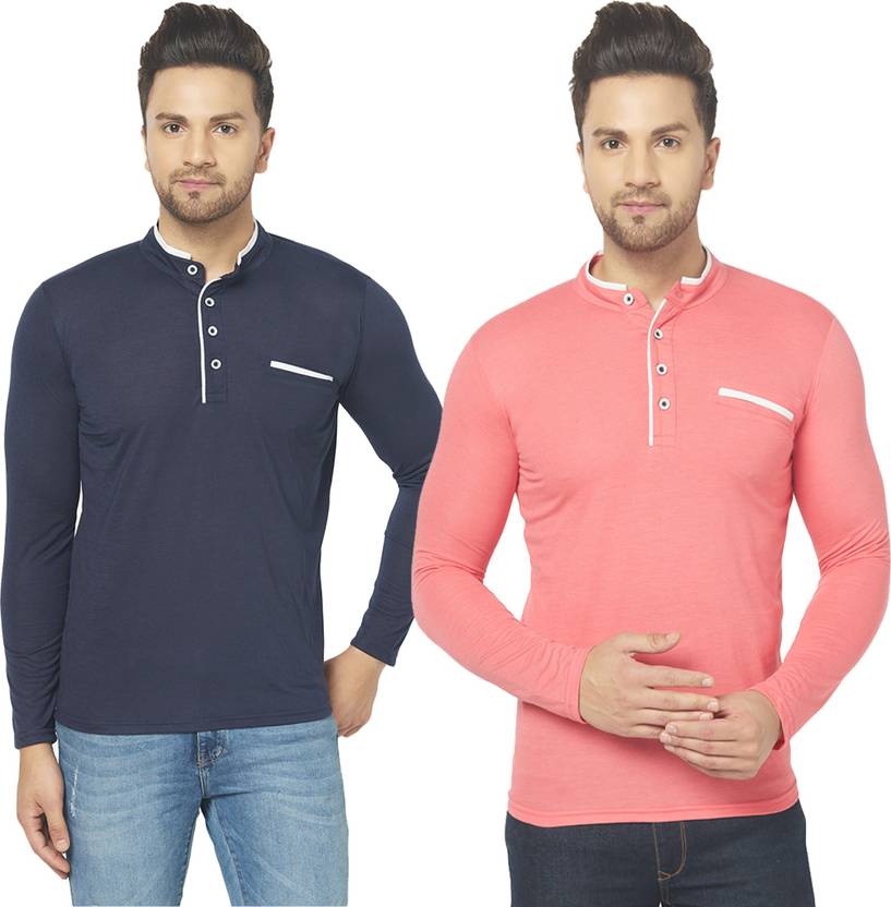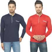 Pack of 2 Solid Combo of Two mandarin collar Neck T-Shirt Men Solid Mandarin Collar Cotton Blend Dark Blue, Red T-Shirt