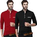 Jaskart Solid Men Mandarin Collar Red, Black T-Shirt