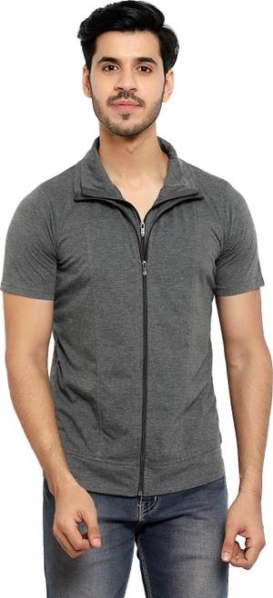 Tresna Trendz Solid Men Polo Neck Grey T-Shirt