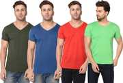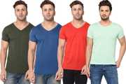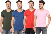 Pack of 4 Men Solid V Neck Cotton Blend Multicolor T-Shirt