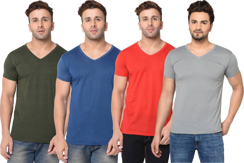Consist of 4 V Neck Half Sleeve T-shirts Combo Pack