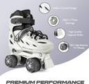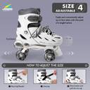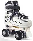 Jaspo Scud X Trail Adjustable Quad Roller Skates with PU LED Wheels Quad Roller Skates - Size 34-38 Euro (White, Black)