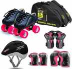 Jaspo Skater Girl Pro Shoe Skate Combo(Shoe Skates+ Helmet+Knee+Elbow+Wrist+Bag) (Age 13-14 yrs) Shoe Skates - Size 7 UK (Pink)