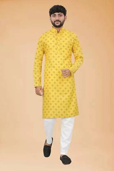 Enhance your ethnic look with this stylish foil print kurta for men, designed for festive and traditional occasions. Made from a soft cotton blend fabric, it features a subtle yet eye-catching foil print that adds a rich touch to your appearance. The straight cut and full sleeves offer a clean and elegant fit, making it ideal for celebrations, weddings, poojas, and more.