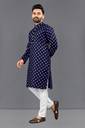 Enhance your ethnic look with this stylish foil print kurta for men, designed for festive and traditional occasions. Made from a soft cotton blend fabric, it features a subtle yet eye-catching foil print that adds a rich touch to your appearance. The straight cut and full sleeves offer a clean and elegant fit, making it ideal for celebrations, weddings, poojas, and more.