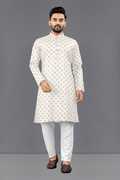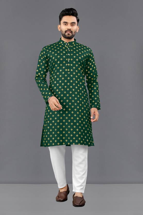 Enhance your ethnic look with this stylish foil print kurta for men, designed for festive and traditional occasions. Made from a soft cotton blend fabric, it features a subtle yet eye-catching foil print that adds a rich touch to your appearance. The straight cut and full sleeves offer a clean and elegant fit, making it ideal for celebrations, weddings, poojas, and more.