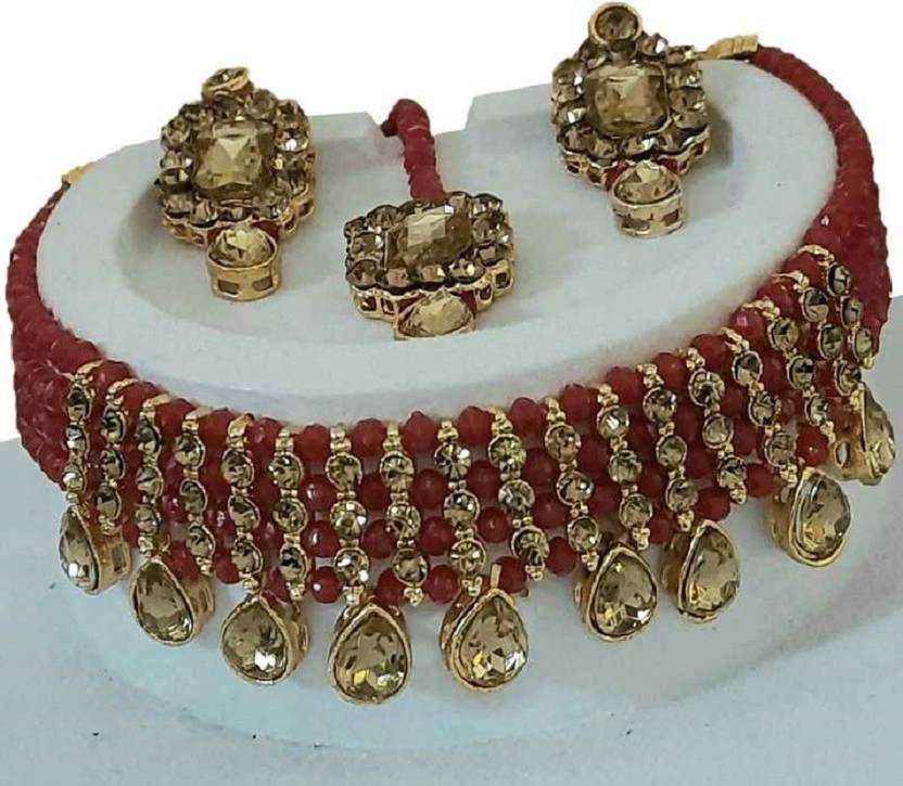 jatin imitation Metal, Stone Gold-plated Gold, Red Jewellery Set (Pack of 1)