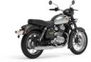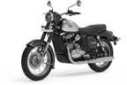 Designed with the rider’s comfort in mind, the Jawa 350 features a sleek, curvaceous body with an offset instrument console that adds a touch of modernity to its classic design. The flat single-piece seat is crafted for long-distance comfort, while the bar-end mirrors enhance its sporty character. This model's all-black treatment on the underpinnings perfectly complements its aggressive stance and bold presence on the road.