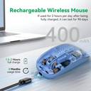 Coracao Pureview Transparent Wireless and Bluetooth Rechargeable Mouse Wireless Ambidextrous Optical Gaming Mouse with Bluetooth (2.4GHz Wireless, Blue)