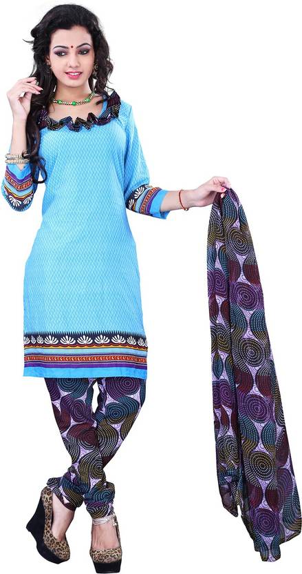 Jay Ambe Creation Sky Blue Un-Stitched Salwar Suit With Dupatta & Kameez Fabric:- Cotton Salwar Fabric :-Cotton Dupatta:- Chiffon Kameez Length:-2.1Mtr. Salwar Length:-2.1Mtr. Dupatta Length:-2.1Mtr.