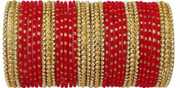 Glass Bangles: Our glass bangles exude a delicate and sophisticated allure. Crafted from high-quality glass, these bangles come in a variety of vibrant colors and intricate designs. Perfect for adding a touch of grace to any outfit, glass bangles are lightweight and comfortable, making them ideal for everyday wear or special events. The glossy finish and transparency of glass give these bangles a unique, sparkling effect that catches the light beautifully.
