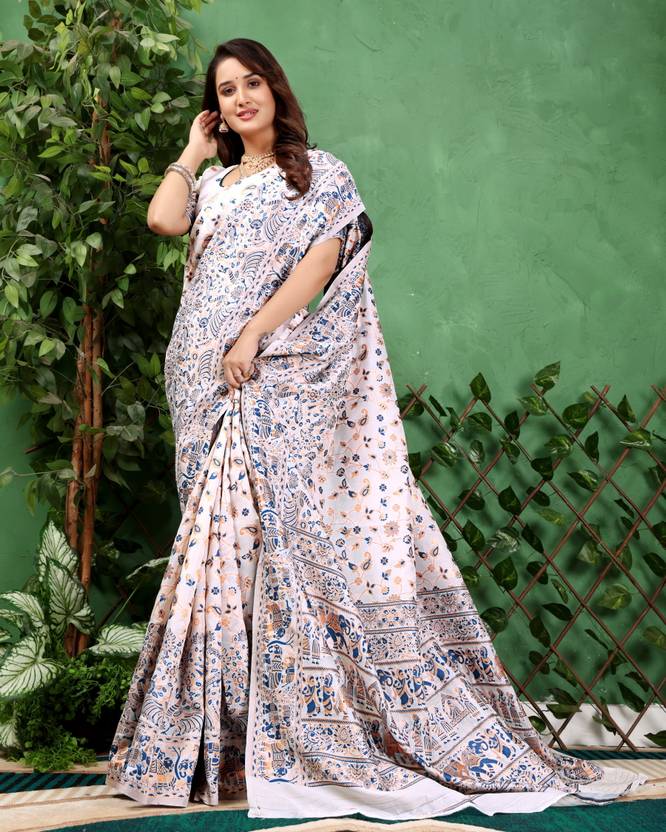 FANCY NEW ARRIVAL ATTRACTIVE PURE BANARASI TYPE WHITE PASHMINA SAREE SOFT SILK SAREE
