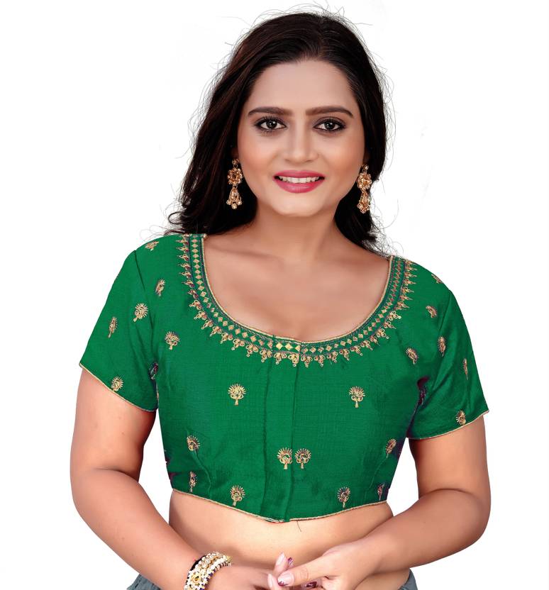 According to Trend, this is the fancy latest designer Phantom fabric sewn blouse for any woman size it will sit close to you The body shape itself needs extra fitting. You can wear any type of sari on this blouse to look extra.