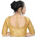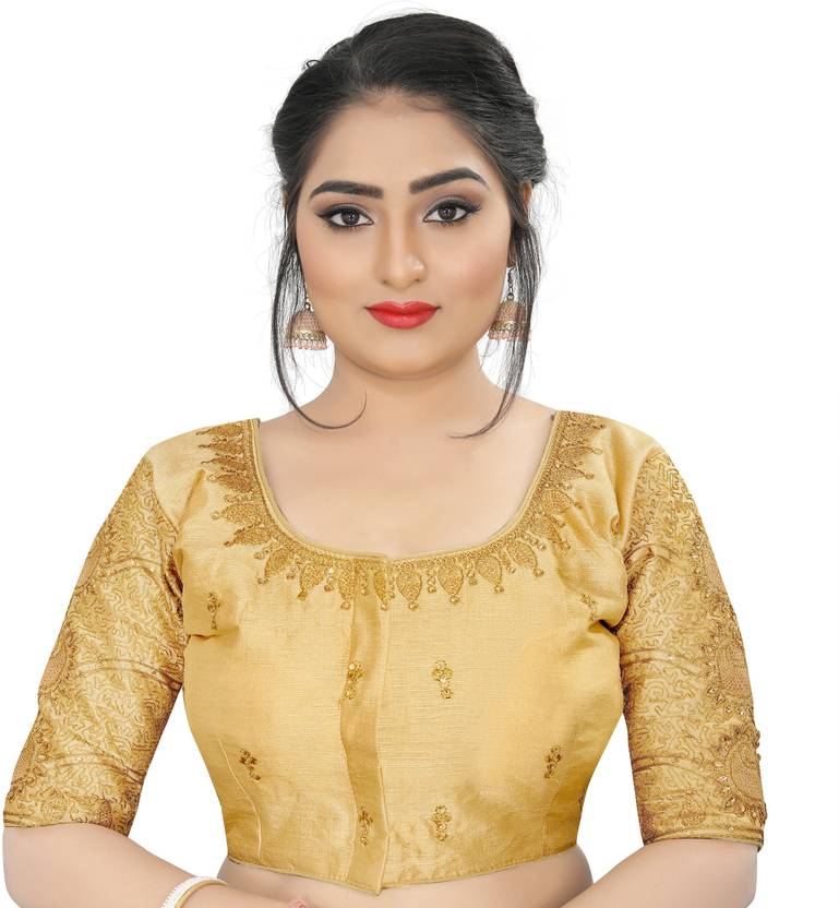Blouse making size 38" and alter upto 42". Blouse has front open pattern. Blouse material Heavy banglori silk. Blouse has sequance and jari work.