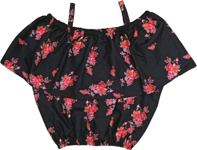 Girls Casual Crepe Crop Top (Multicolor, Pack of 1)