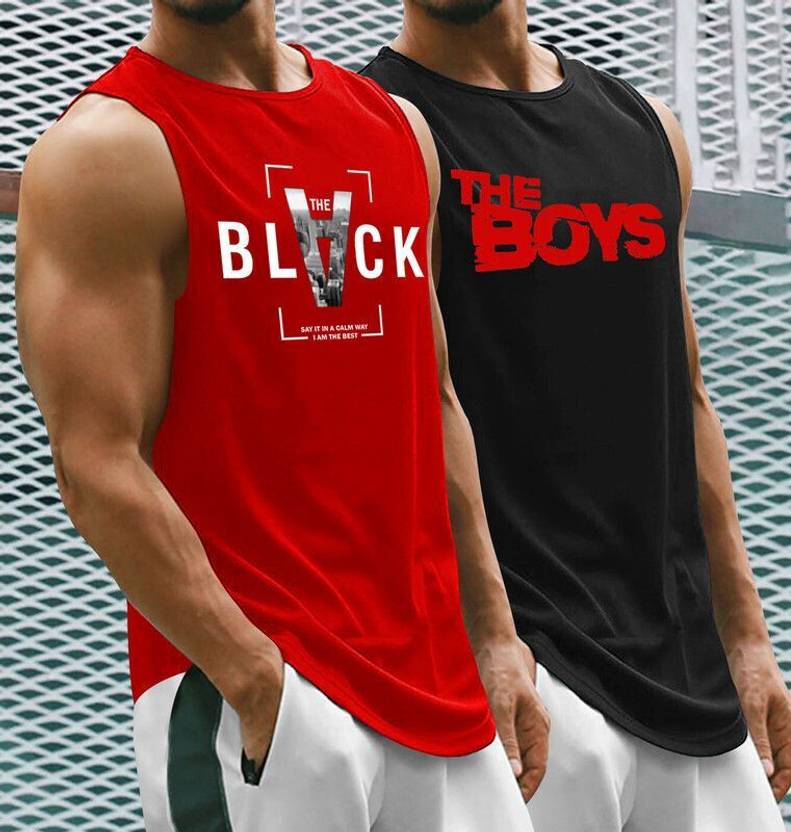 Upgrade your casual wardrobe with these bold and stylish men’s sleeveless vests, designed for those who appreciate comfort, confidence, and individuality. Perfect for gym-goers, streetwear enthusiasts, or anyone who values effortless style, these vests bring together functionality and fashion in one seamless blend. Featuring two dynamic designs—one in a deep navy blue emblazoned with “THE BLACK” and a bold “V” graphic in a framed layout, and the other in a striking red stamped with the high-energy phrase “THE BOYS”—these vests command attention while providing breathable comfort all day long.Constructed from premium-quality cotton fabric with a hint of stretch, these sleeveless vests ensure durability, flexibility, and softness against the skin. Whether you're powering through a workout, heading out with friends, or relaxing on a weekend, these tops allow unrestricted movement and excellent ventilation. The fabric wicks away moisture, making them an ideal choice for high-energy activities or hot summer days. The cut-off armholes enhance mobility while showing off your arms, making these vests perfect for fitness lovers who like to flex their progress.The blue vest stands out with its minimal yet impactful graphic—THE BLACK V—featuring a grayscale cityscape within the letter "V", creating a futuristic and urban aesthetic. The slogan “Say it in a calm way, I am the best” is printed underneath, adding a subtle note of self-assurance and cool-headed determination. This vest represents a refined sense of identity—perfect for individuals who walk the line between quiet confidence and unshakable pride.Meanwhile, the red,navy,black,whote, mustard vest boldly shouts “THE BOYS” in a rugged, distressed white font. This design exudes camaraderie, brotherhood, and youthful energy—ideal for group hangouts, team outings, or casual weekend vibes. The vibrant red color radiates confidence and is sure to turn heads wherever you go. Pair it with joggers, shorts, or jeans, and layer it under open shirts or jackets for a more styled ensemble.Versatile in style and practical in wear, these sleeveless tees make a great addition to any modern man’s wardrobe. Whether you’re out for a run, lifting weights, relaxing at the beach, or chilling with your crew, these vests deliver style, comfort, and attitude in equal measure. Their bold statements and energetic color palettes make them not just clothing items, but expressions of personality and purpose. You’re not just wearing a vest—you’re making a statement.Ideal for athletes, fitness buffs, fashion-forward individuals, or groups looking for matching statement gear, these vests are as flexible as your lifestyle. They can be styled up or down depending on your needs—go sporty with track pants and sneakers, or lean into streetwear with ripped jeans and chunky accessories. They’re also great for themed parties, music festivals, or travel adventures where packing light but staying stylish is a must.