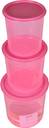 Set of 3 - 4Litre / 7L / 12L. Available in 2 Bright Colours - PASTEL BLUE / PASTEL PINK. Lids are made of soft stretchable Plastic called LLDPE and Containers are made of PP. The elastic properties of these Strechable Lids makes the container air tight and water proof. They have an artistic etching design both on the lid and the container which gives a CLASSY look.