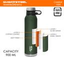 Jaypee Plus Charlie Double Wall Insulated Flask 1000 ml Stainless Steel Bottle (Pack of 1, Green)
