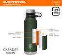 Jaypee Plus Charlie Double Wall Insulated Flask 750 ml Stainless Steel Flask (Pack of 1, Green)