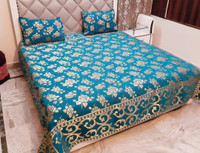 JAYVAAM Velvet King Flat 250 TC Floral Bedsheet (Pack of 1, Blue)
