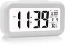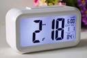 This is large screen digital LCD mute alarm clock backlight touch light sensor Ringtone is BB progressive tones- ringing lasted one minute- press the snooze alarm sounds to pause for five minutes. Good sleep lighter friend- LED display digital large- myopia still see the time. Alarm clock with light sensors- night without lights status- LED night light blue slightly illuminated. Alarm sounds- from weak to strong- from slow getting fast