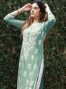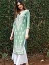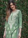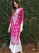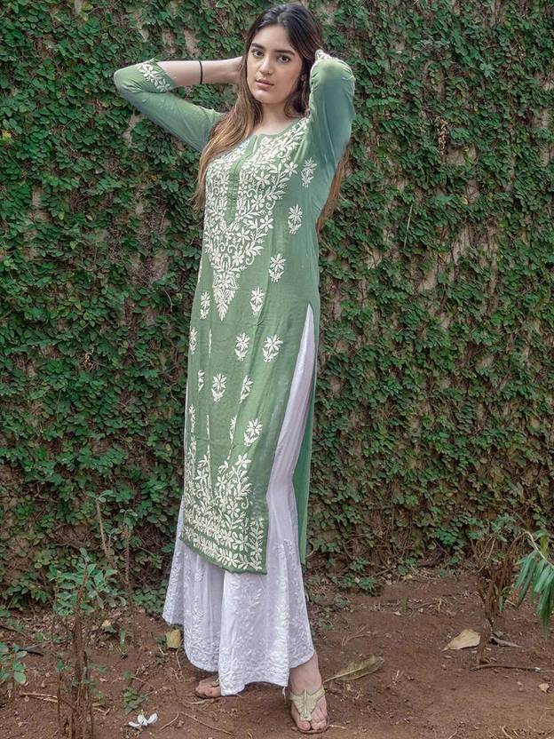 Transform your wardrobe with our exquisite embroidered kurta. Crafted from premium quality cotton, this kurta is a harmonious blend of comfort and style. The intricate white floral embroidery adorning the neckline and sleeves adds a touch of timeless elegance. Designed with three-quarter sleeves and a straight silhouette, this kurta offers a flattering fit for all body types. Lightweight and breathable, it’s perfect for both casual outings and festive gatherings. Pair it with white palazzos or leggings and statement jewellery to complete your stunning ensemble.