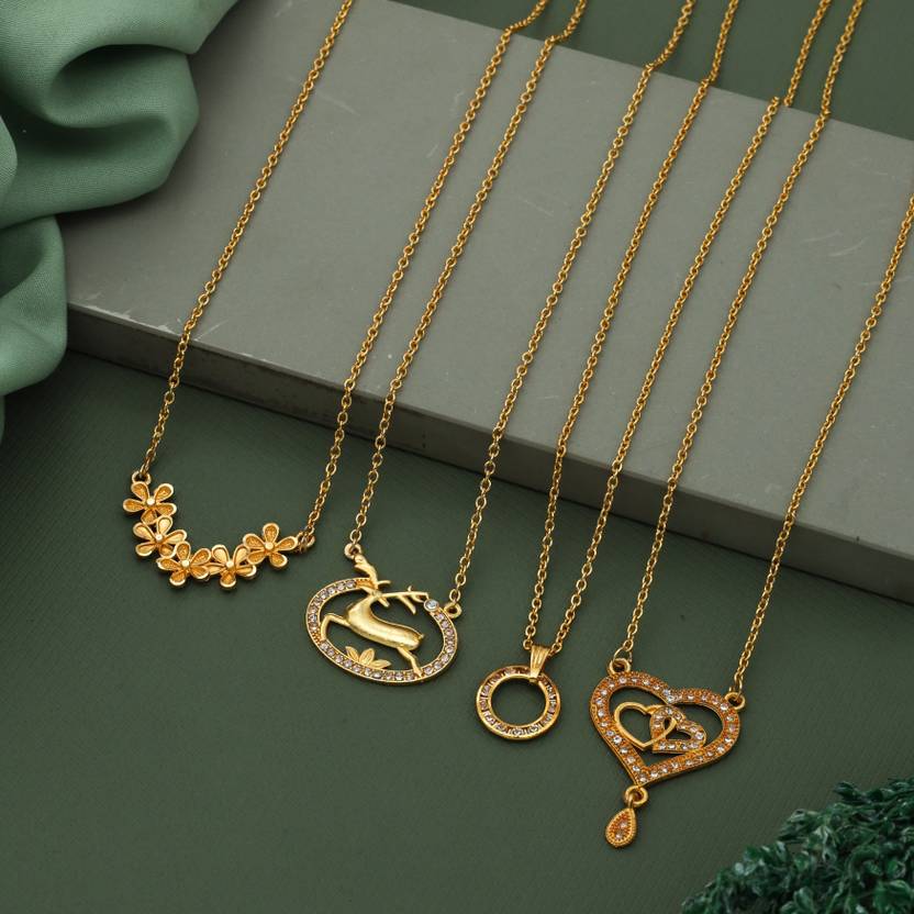 Trending Combo of 4 Necklace Pendant Chain Brass Necklace