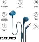 JBL Endurance Run 2 with Fliphook & TwistLock Technology, Pure Bass, IPX5 Sweatproof Wired (Blue, In the Ear)