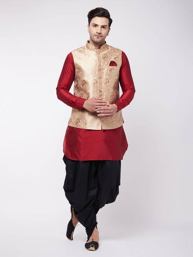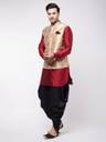 Men Silk Blend Kurta Dhoti Ethnic Jacket Set