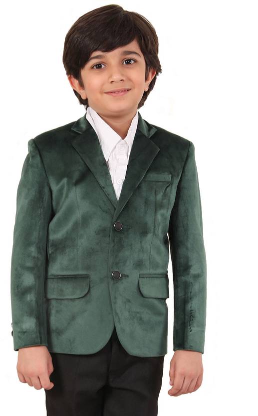 JBN Creation Solid Single Breasted Festive Boys Blazer (Green)