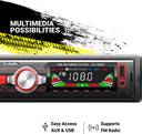 JBRIDERZ Stereos are Compact design Longer service life Easy functions Superior performance Product Details: Car Stereo with FM, MP3, USB, SD Card Support,AUX IN Get this high-performance Genipap car stereo for your four-wheeler and go onto listening your favorite numbers with exceptional clarity. Give your car the proper music dose it deserves in the form of this stunning digital media receiver HI-FI OUT PUT 18 PRESET STATION ID3 TAG SYSTEM EQUALIZER 4 FREQUENCIES Power: Supports 1000 watts PMPO Speakers, high power output Music functions: Balance Control, Rotary Tuning/Volume Control, Last Track Memory, FM Digital Radio, Bass and Treble control to hear Clear, Deep and Low music notes FM radio: Easy Digital tuning to favorite Radio stations Display: LCD color display Easy operation: Remote control for easy operation Other functions: Built in USB Port: easy plug and play from iPod, MP3 Player, Pen drive/USB stick, portable hard drive etc