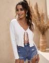 The Stylish Polyester Lycra Women Short Shrug appears to be a versatile and fashionable clothing item designed for both summer and winter wear. Here are some key features and benefits of this shrug: 1. **Fabric:** The shrug is crafted from a blend of high-quality polyester and lycra. This fabric combination ensures a soft and smooth feel against the skin while offering excellent flexibility and durability. Polyester is known for its strength and resistance to wrinkles, while lycra (also known as spandex) adds stretch and elasticity to the garment. 2. **Design:** The short shrug comes in a chic black color with a trendy look, making it suitable for a range of occasions, from casual outings to semi-formal events. Its sleek design can elevate your outfit and enhance your style. 3. **Seasonal Versatility:** This shrug is designed to be versatile for different seasons. It can provide a light layer of warmth during chilly weather in winter, and it's also breathable and airy, making it comfortable for hot summer days. This adaptability makes it a valuable addition to your wardrobe. 4. **Easy to Pair:** The shrug is designed to effortlessly complement a variety of outfits. You can pair it with dresses, tops, tank tops, and more, making it a versatile piece that can enhance your overall style. 5. **Comfortable Fit:** The lycra blend in the fabric ensures a comfortable and figure-flattering fit. The stretch and elasticity offered by lycra allow for ease of movement throughout the day, making it a practical choice for various activities. 6. **Available Sizes:** The shrug is available in various sizes, catering to different body shapes. This range of sizes ensures that you can find a tailored fit that suits your body type. 7. **Care Instructions:** The shrug is easy to maintain, as it is machine washable. It is designed to retain its shape and color even after multiple washes, which is convenient for everyday wear. In summary, the Stylish Polyester Lycra Women Short Shr