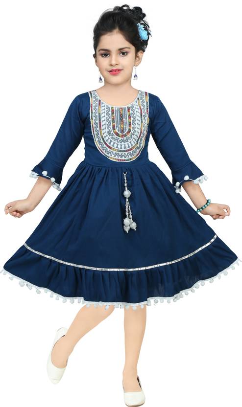 JEBA COLLECTION Girls Midi/Knee Length Casual Dress (Blue, 3/4 Sleeve)