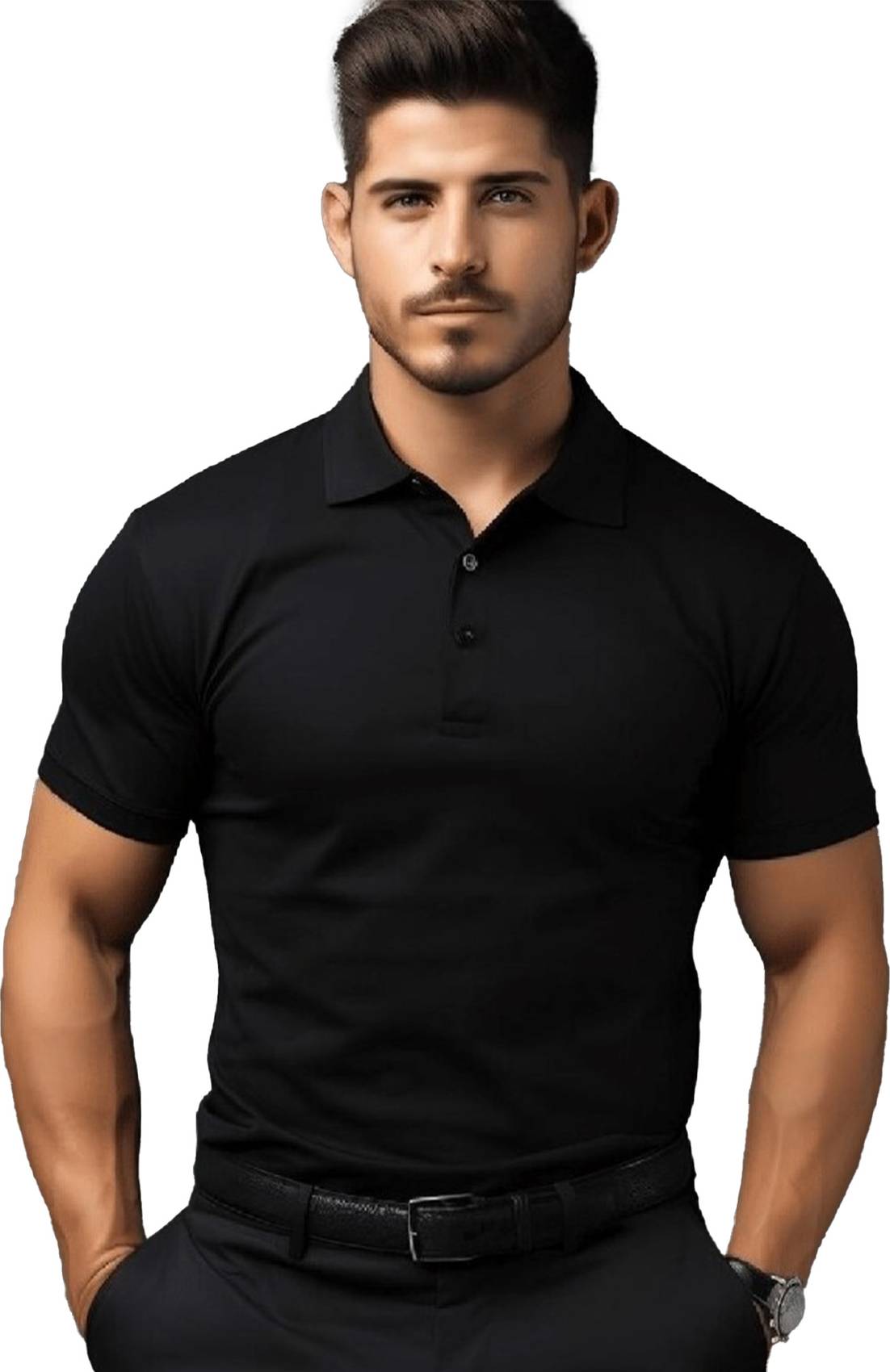 JEDFER Solid Men Polo Neck Black T-Shirt