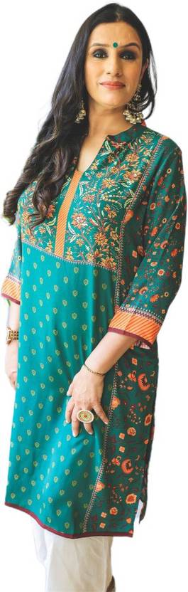 Green digital printed placement printed yoke 3/4th sleeve , crafted in skin friendly fabric with straight fit will help garner compliments for your amazing fashion sense. Team it with straight fit pants and accessories for a casual or festive look.
