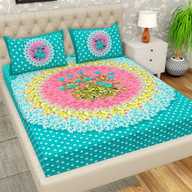 Jeevat Cotton Double Flat 144 TC Jaipuri Prints Bedsheet (Pack of 1, Grey)