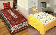Jeevat Cotton Single Flat 180 TC Floral Bedsheet (Pack of 2, Multicolor)