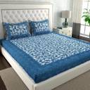 Jeevat Cotton Double Flat 144 TC Jaipuri Prints Bedsheet  (Pack of 1, Light Blue, Blue, White)